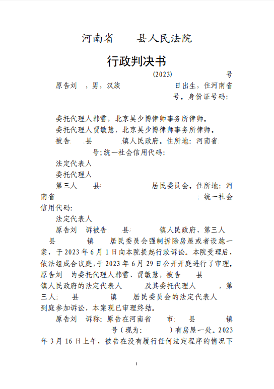 本案代理律師 北京吳少博律師事務(wù)所郭昌通 案情摘要: 無(wú)證房居住多年未辦證 被確認(rèn)為違建